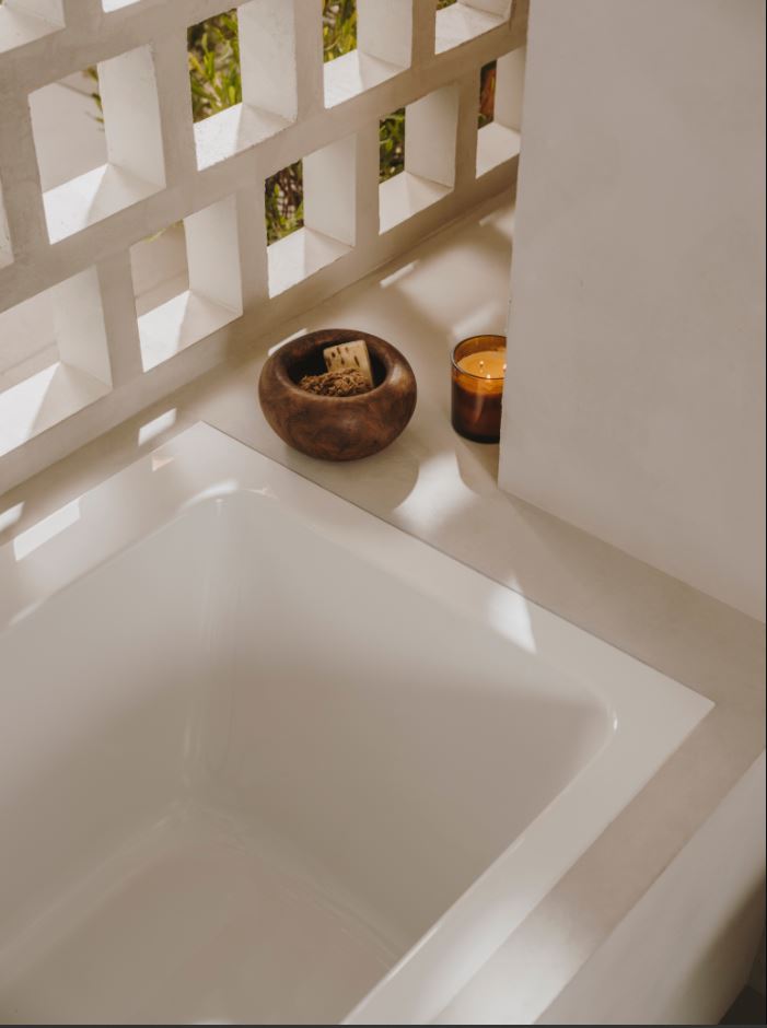 Ona’s range of baths lets you choose between different drop-in dimensions and gives you the possibility to decide on slightly smaller corner-right or corner-left installation. Other collection features include the faucet bench, an integrated overflow and a comfortable bottom length and depth. As masonry work can be avoided with the corner installation, even this process becomes simple.