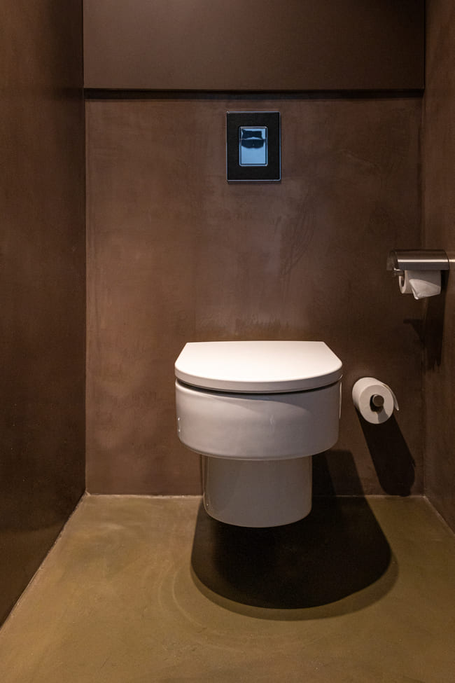 The evocative Thesis faucets, designed by Antonio Bullo, feature a modern and dynamic design with clean lines and minimalist shapes, adding elegance and style to the space. The historic graphite-coloured Bol washbasin, set on a wooden counter, and the architecturally shaped Happening WC further add to the sophisticated aesthetic of the rooms, reinforcing their connection to the overall architectural design of the hotel and its surroundings. These elements exemplify how modern design can blend harmoniously with traditional features to create spaces that are both functional and visually stunning.