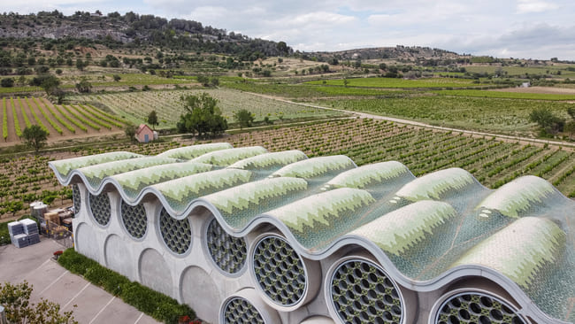 Sustainability and technological innovation are at the heart of Mastinell Cava & Hotel’s design philosophy. The building’s continuous, undulating roof shapes spaces without the need for internal walls, creating a fluid, open environment ideal for cross-ventilation. This design approach not only enhances the visual appeal, but also minimises the environmental footprint. The hotel's sustainable architecture includes features such as the collection and reuse of rainwater and a biomass boiler, exemplifying best practice in sustainable building. These elements ensure efficient energy use and water conservation, reinforcing the hotel's commitment to environmental responsibility.