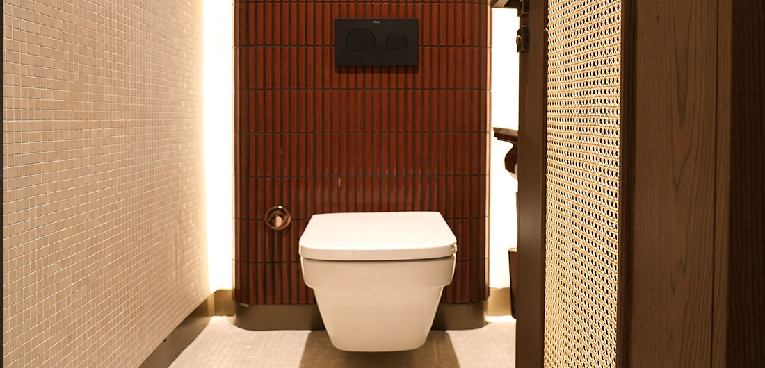 Bespoke ceramics in the restrooms further emphasises the restaurant’s commitment to combining modern comfort with cultural elements. Special attention was paid to maintaining a cohesive look, ensuring that the toilets, like the rest of the restaurant, reflect the theme of natural unity and timelessness.