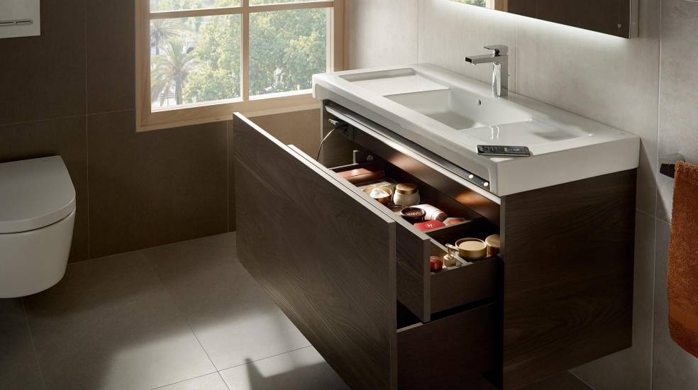 Because bathroom furniture is also part of the technological revolution, the smart furniture unit Stratum-N offers you another expression of comfort with Bluetooth speakers, an extra power socket and interior lighting.